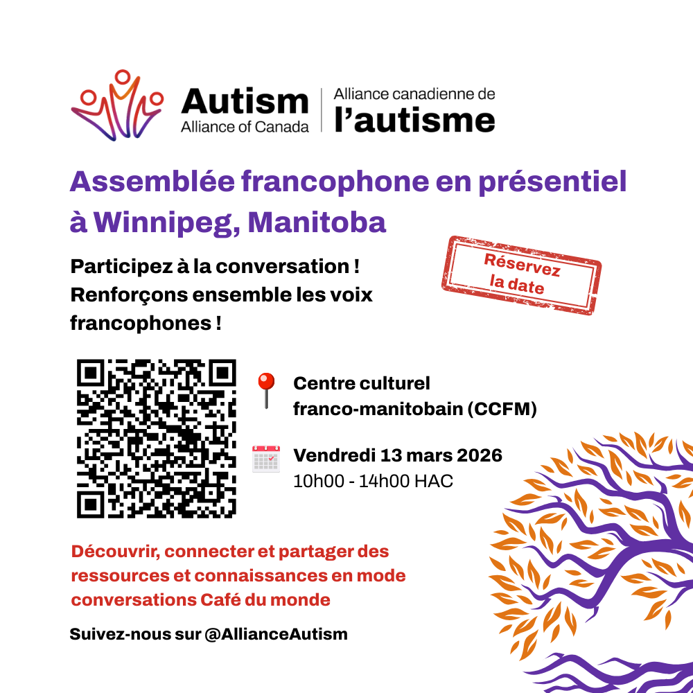 L’Alliance canadienne de l’autisme est heureuse d’annoncer la quatrième Assemblée francophone en présentiel !