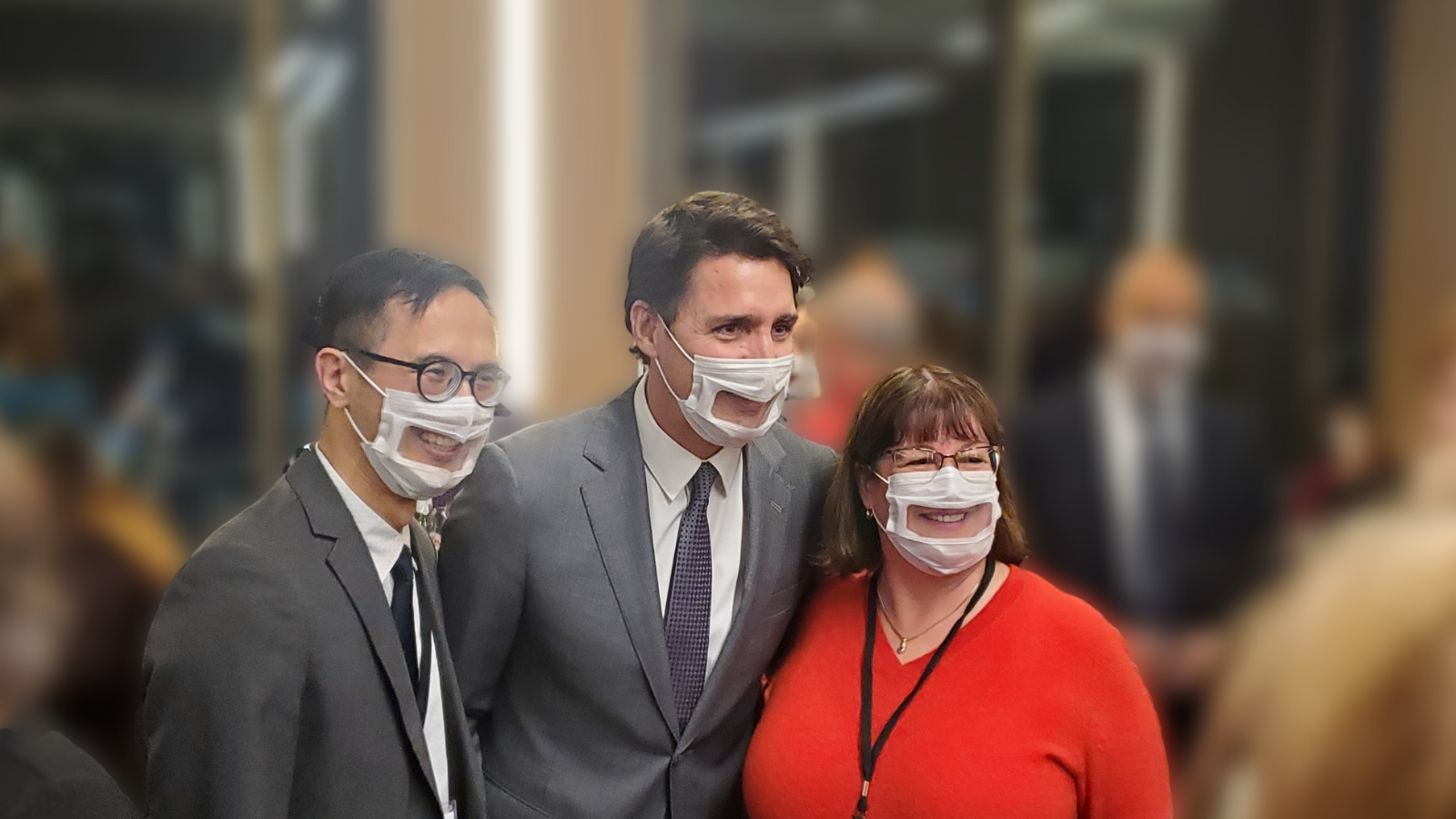 Dr. Jonathan Lai being photographed with Debbie Irish and Prime Minister Justin Trudeau